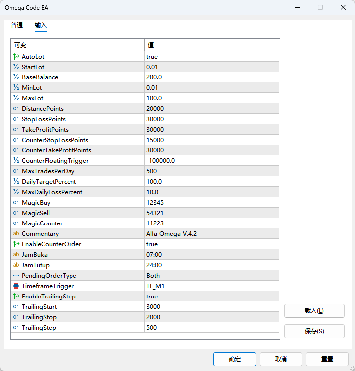 作为一款专业EA,Omega Code EA MT4在“交易管理”上实现了“全参数可定制+自动化调控”,让交易者既能掌控细节,又无需手动盯盘: