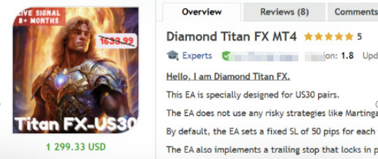 Diamond Titan FX是由一支拥有丰富交易和编码经验的团队设计和创建的 EA。该 EA 的设计目标是改变交易者认为机器人交易不如人类交易有效的先入之见。