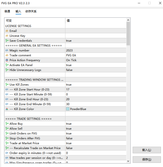 4、预设策略模板:内置多套针对不同品种和时间框架的预设(如“FVG EA PRO–GOLD–15 Min–3 Years Optimization.set”),支持一键应用或自定义调整。