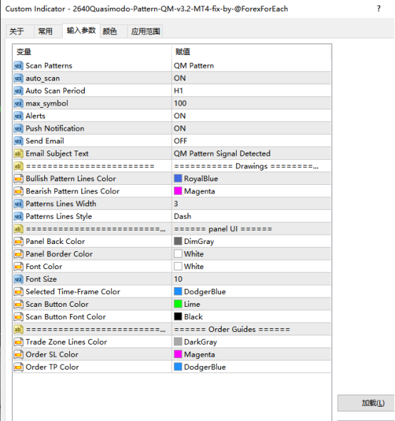 电子邮件主题文本: QM Pattern Signal Detected – 电子邮件警报的主题行(如果启用了电子邮件通知)。