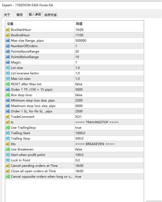 一、适用货币对:该EA专为指数交易设计,仅针对DAX(GER30)和道琼斯(US30)这两个高波动性指数。这两类指数因其日内波动剧烈、流动性集中的特点,与EA的箱型突破策略高度适配,能够在价格突破盘整区间时捕捉显著盈利机会。
