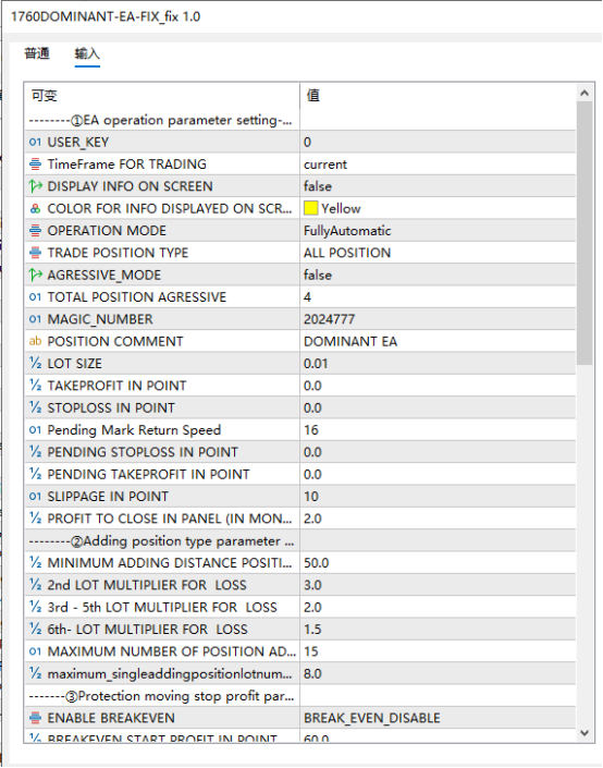 • 止损止盈:未明确具体数值,需在EA设置中自定义(建议根据ATR动态设置);