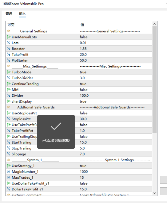 • 网格恢复系统:通过PipStarter(初始网格间距)和Booster(加仓倍数)控制网格密度,避免过度加仓;