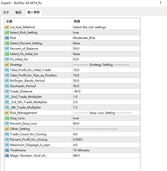 选择True作为您想要的风险管理设置:Select_Risk_SettingSelect_Percent_SettingSelect_Fix_initial_lot(仅选择一个为 True)。