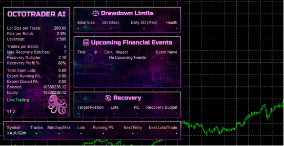三、最低存款要求:推荐初始资金至少200美元(基于回测建议,实际可根据风险参数调整,但低资金需注意仓位控制)。动态手数调整功能会根据账户余额自动优化仓位,适配不同资金规模(如prop公司账户场景)。