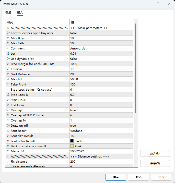 • 为规避震荡市中的“假突破”信号,EA深度集成WaveTrend震荡指标作为二次过滤工具。该指标通过监测市场超买超卖状态,为MA交叉信号提供额外确认:当MA交叉触发多头信号时,需同步满足WaveTrend指标从“oversold区域(如50以下)”回升的条件;当MA交叉触发空头信号时,需匹配WaveTrend指标从“overbought区域(如50以上)”回落的特征。这种“趋势+震荡”的双重验证逻辑,能有效过滤无效信号,让每一次交易都建立在更坚实的市场逻辑之上。