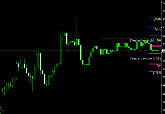 1、Yesterday High(昨日最高价)-蓝色水平线:代表前一个交易日的最高价格。这是一个非常重要的阻力位。
