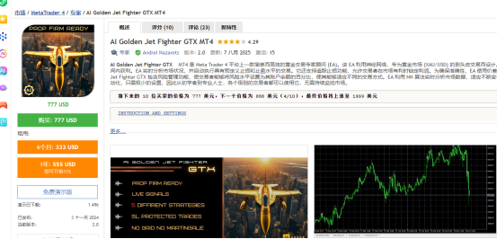 AI Golden Jet Fighter GTX是一款在Meta Trader 4平台上运行的强大的专家顾问(EA),专为黄金交易设计,尤其适合新手入门。以下是对其详细介绍: